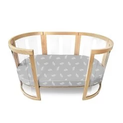 Celebrate the arrival of your little one with these beautifully crafted organic jersey cotton fitted sheets that will add a luxurious touch to your little one’s nursery. Made from the highest quality organic cotton, these sheets are fully fitted with a full zipper for a snug fit to your oval and round mattress, so not only is it perfect fit for your Sova Cot but it will also fit many other round and oval cots. Features GOTS Certified Organic Cotton Beautifully soft to touch luxury textile Fully fitted over your mattress with a zip pouch so you have a perfect fit Includes one round bassinet sheet and one oval cot sheet Suitable for oval cots including Kaylula Sova Cot by babyhood Available in Snow White, Lemon Twist, Tic Tac Toe, White with Grey Leaf and Grey with White Leaf What is Organic Cotton? The term ‘organic’ refers farming and production methods that are managed in accordance with organic standards (Source: Australian Certified Organic, 2014) and is grown using seeds that are not genetically modified. Organic cotton is grown without the use of synthetic chemicals like artificial fertilisers, pesticides and agrochemicals. Why Buy Organic? It is better for your baby’s delicate skin as it reduces their exposure to agrochemicals and insecticides as it is a cleaner fibre. It is better for our environment as organic cotton reduces chemical run off through our water ways and through the soil. What is GOTS? The Global Organic Textile Standard (GOTS) is the worldwide leading textile processing standard for organic fibres, including ecological and social criteria, backed up by independent certification of the entire textile supply chain.
