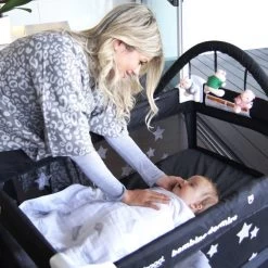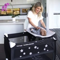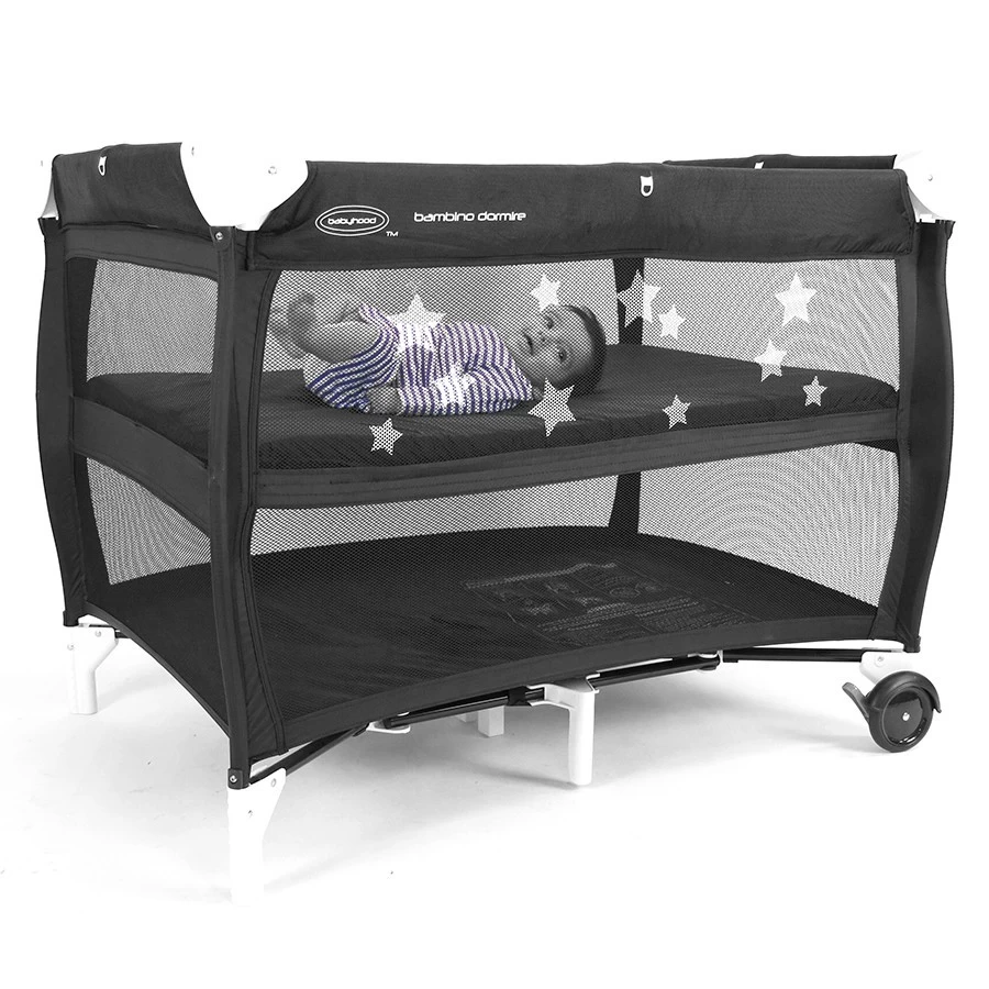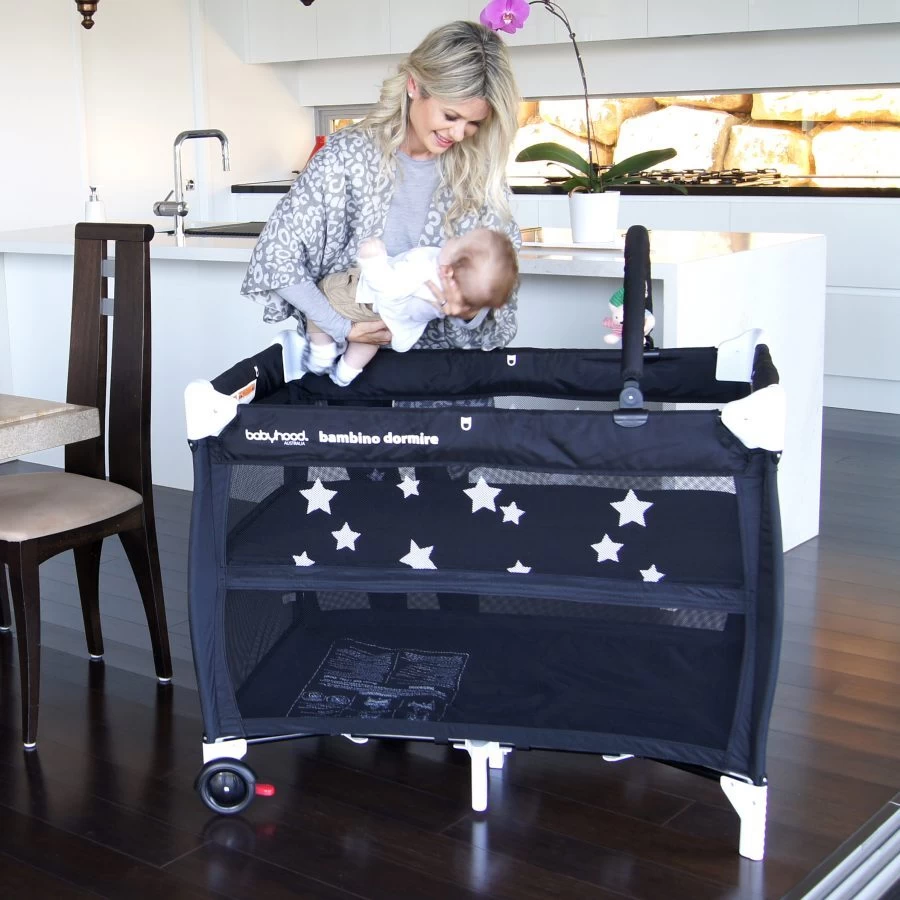 The Bambino Domire Portacot is a unique patented design tested to comply fully with the Australian Standard including the non mandatory standards introduced in 2010. For that extra piece of mind, recent independent testing by a leading Australian consumer watchdog, showed that the Bambino Domire Portacot was one of the few porta cots, which are compliant to the mandatory standard. There are multiple independent locking systems and an anti-collapse leg, which provide parents with the comfort of knowing that the Bambino Domire Port a Cot is the safer option for your baby. So not only is it super safe but it has some great features: High quality anodized steel frame Deluxe thick mattress Full mesh sides for breathability and visibility Anti collapse leg Independent locking systems Carry bag with handles Large wheels to pull instead of carry 2 in 1 porta cot weight 9.8kg Tested to AS/NZS 2195:2010 Maximum Weight: Bassinet level : new born to 8kgs Porta cot level : 18kgs
