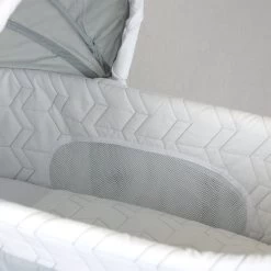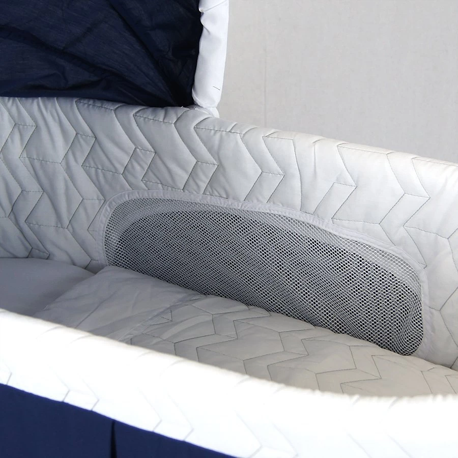 The New Breathe Eze Classic Bassinet Collection is a complete bassinet, with everything you need all in one for your newborn baby’s sleeping space with a new modern design. Unlike traditional bassinets the New Classic Bassinet is super easy to assemble and comes with stylish accents like the box pleated skirt so no more frilly old fashion styling and the quilted accent on the top of the bassinet. The collection includes 3 different modern colours to suit any nursery space including White, Grey and Navy – so there will always be a design perfect for your baby’s space.