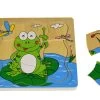 Bright and colourful dinosaurs are featured on this extra thick wooden puzzle. Eight easy-grasp, chunky wild animal pieces . The dinosaur pieces stand upright for pretend play. Encourages eye-hand, fine motor and creative skills.