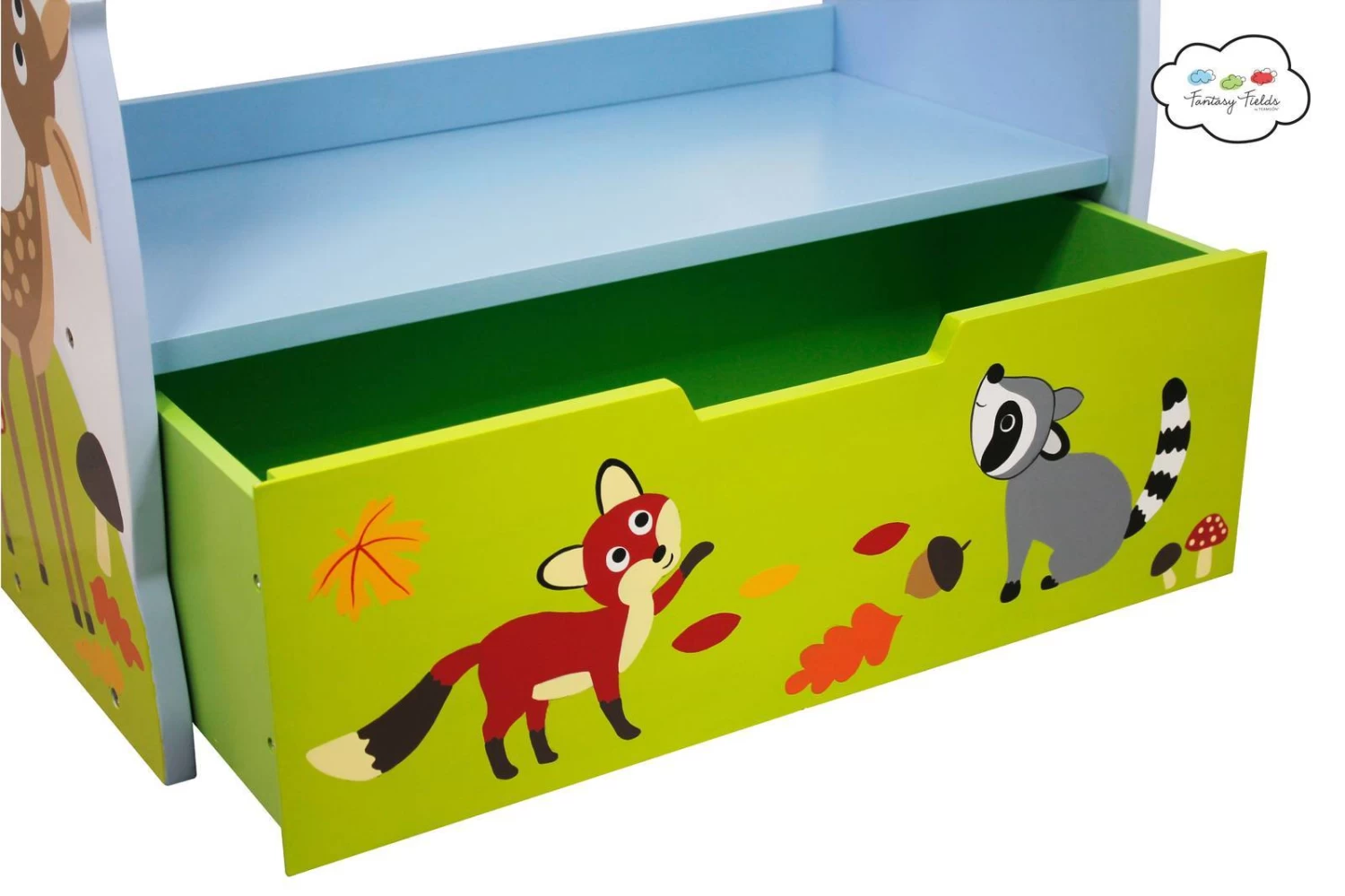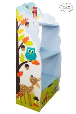Save room for reading! The Enchanted Woodland bookcase is just the place to store all of your children’s favorite bedtime stories, pictures and trophy’s! Three levels with gorgeous murals of hand painted woodland animals playing along the sides of the sky blue wooden masterpiece, this piece is sure to brighten up the room and inspire the imaginations of all of your children. Handy storage drawer below slides out so you can store some games or other fun pass times for your kids!