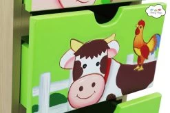 Giddy up and get yourself to the farm! Fantasy Fields’ 5 Drawer Farm Cabinet offers the best place to store all your children’s little keepsakes, from socks and onesies, to barrettes and bows and all sorts of little clothes. Cabinet is hand carved and painted with quality wood and beautiful hand sculpted images of farm animals. Visit with a horse, have an adventure with a cow, sneak about with a sheep, protrude the pathways with a pig and get festive with a farmer and his pup. When a trip to the farm isn’t possible, bring it home! Perfect for all ages.