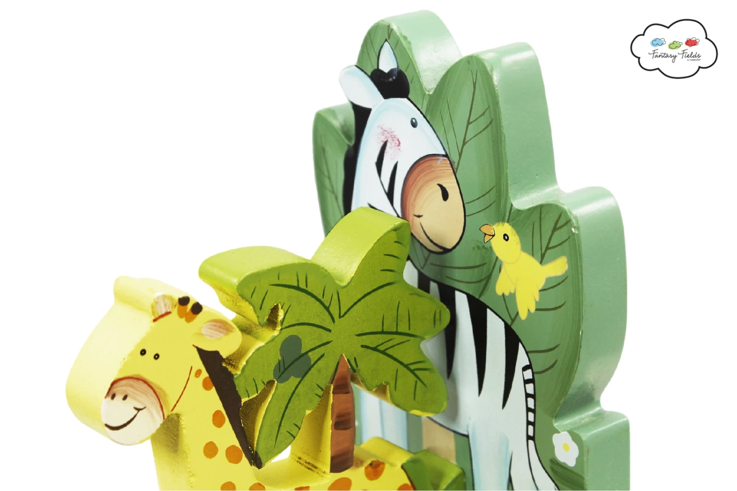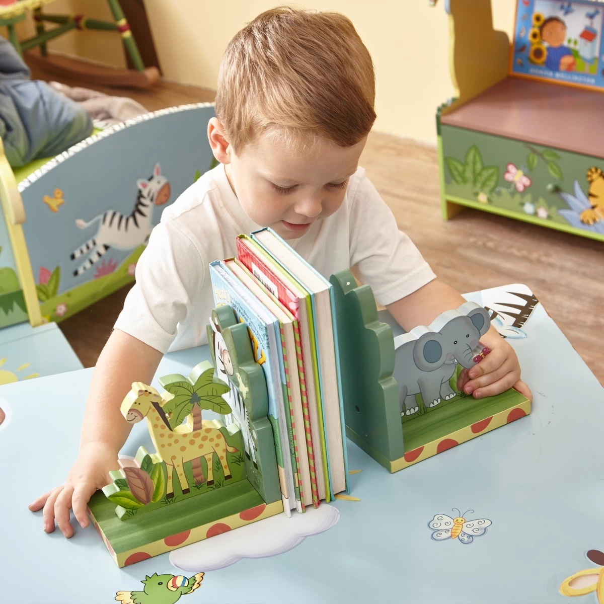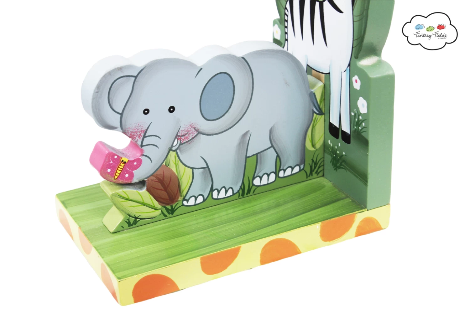 Hold together some of your child’s favorite reads, with Fantasy Fields’ Sunny Safari Bookends. Bookends feature playful hand carved jungle animals, such as elephants, zebras, and giraffes. Promote reading and make it fun with these bookends that are sure to spark your child’s imagination. Goes great with our Sunny Safari Bookshelf. No assembly required. Perfect for all ages.