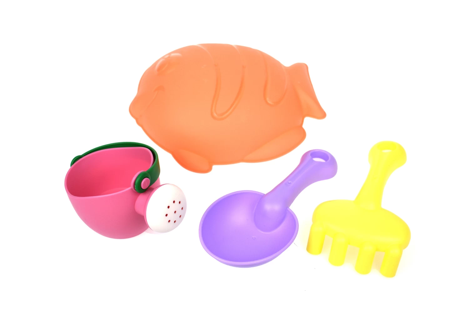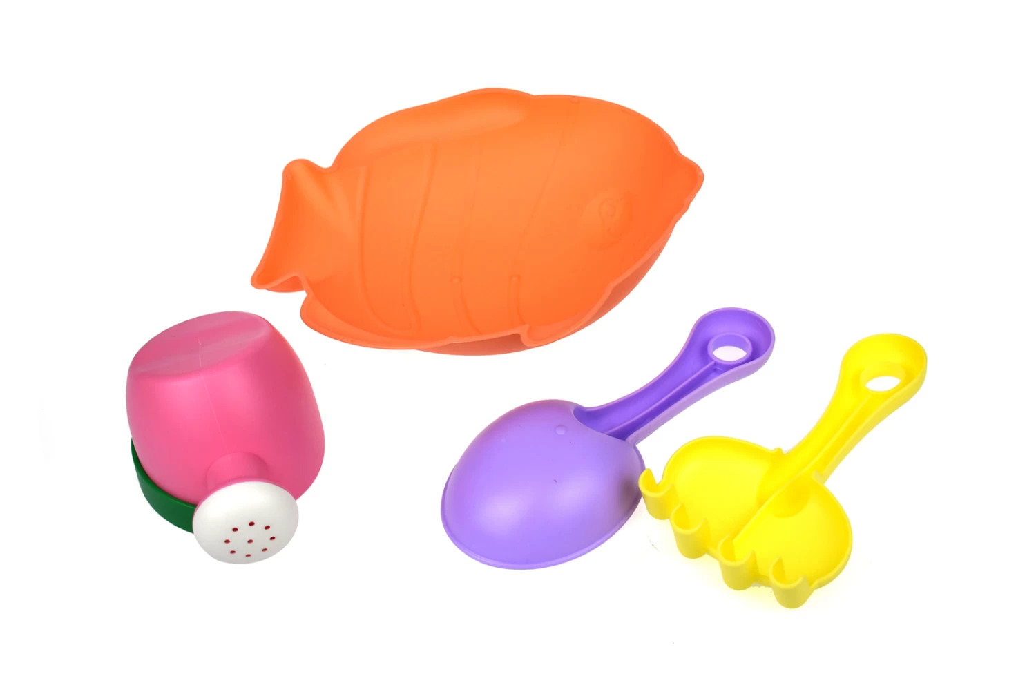 Fish mould: 20cmx16cmx4cm Water can:12cmx7cmx7cm Spoon: 17cmx7cmx3cm Rake: 14cmx8cmx3cm