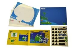 The JarMelo paint is bright and easy to spread, washable and safe to use. Each pack contain 6 tubes of paint, a palette, 6 EVA foam stamps with 2 stamp holders, safety scissors, baseboards, glue stick, embellishing stickers and an inspiration booklet.