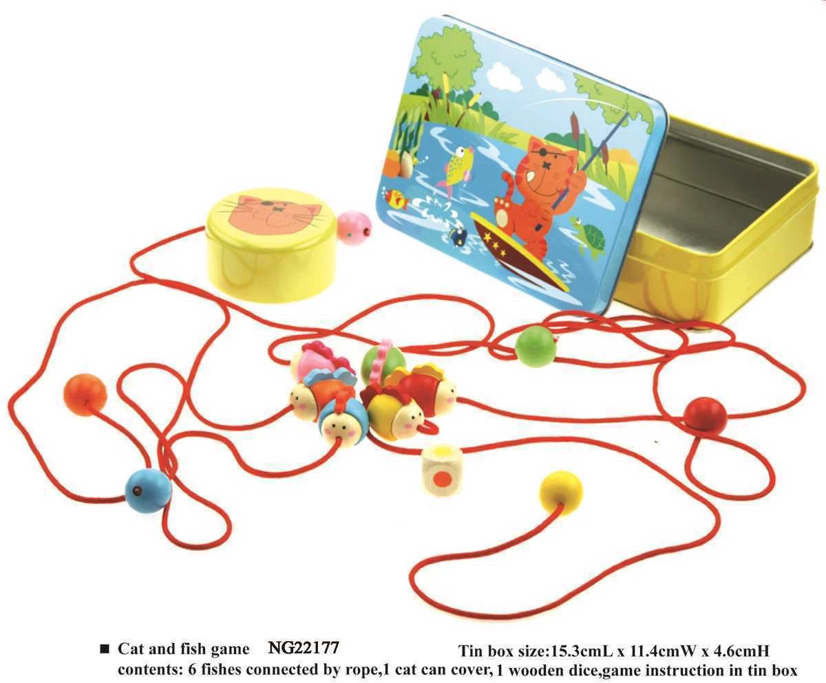 Cat and Fish Game. The purpose of this game is for the cat to catch as many fishes as possible. Instructions included in the box and can have up to 6 players. This encourages social interactions. 3 years plus. Size – 5 x 16 x 12 centimetres.