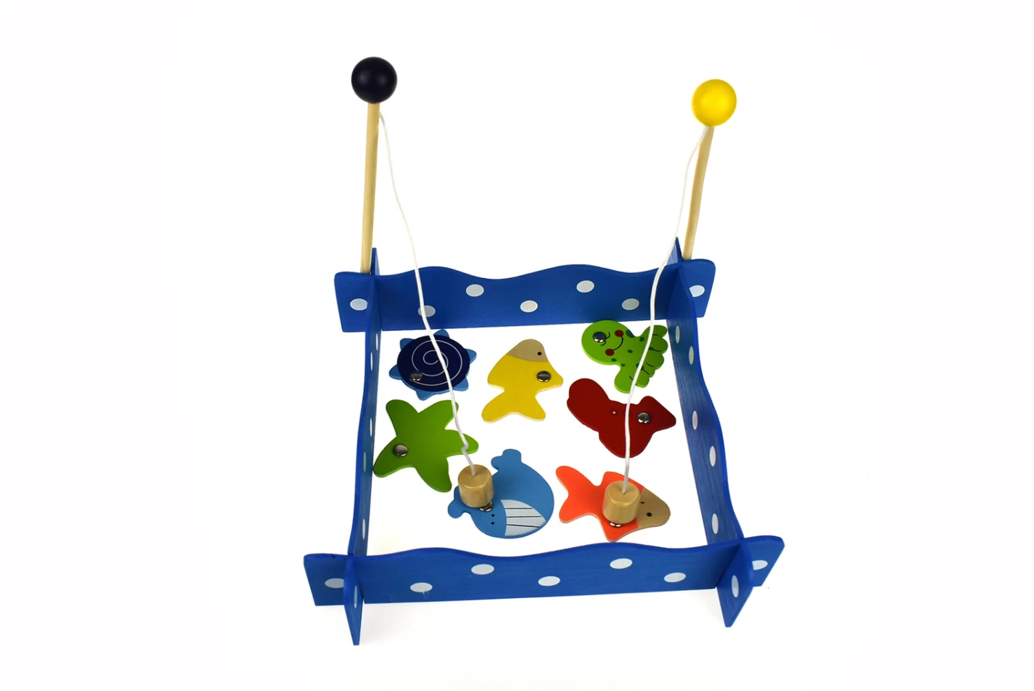 This fishing game will offer many hours of fun. There are 6 magnetic sea creatures, a magnetic boot, 2 fishing rods and 4 pieces of wooden fence per box. All contents are packed in a clear pvc bag. This set will help with improving kids hand and eye co or