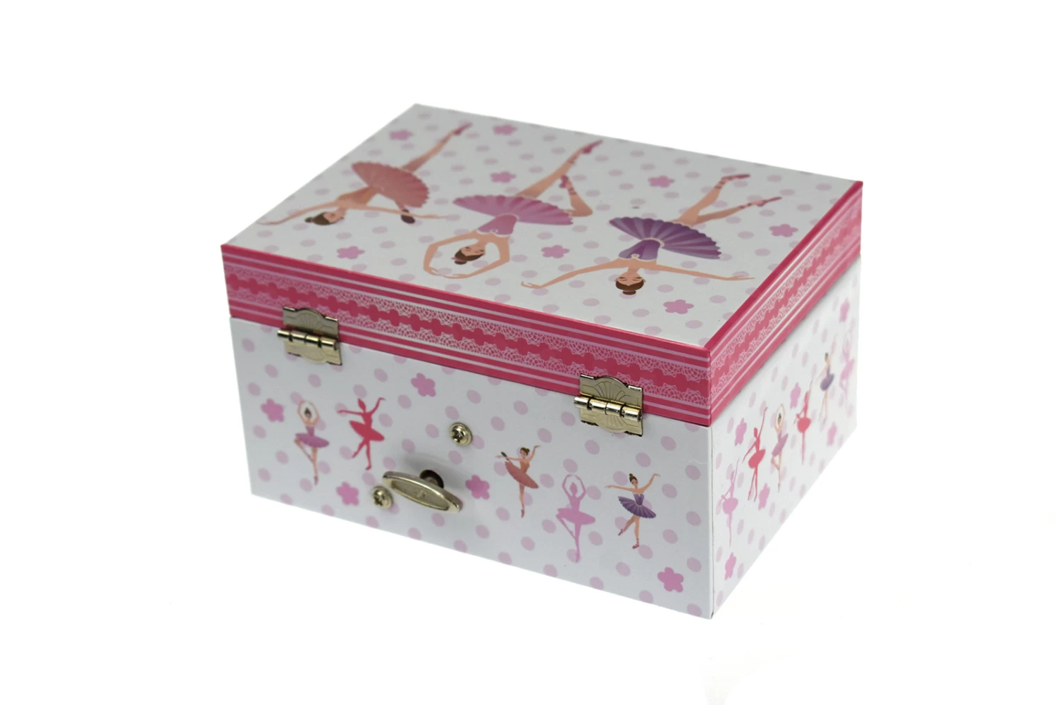 This sweet little ballerina music box would make a beautiful gift for any child and is the perfect place for a child to store their precious treasures. Featuring a ballerina turning in front of a mirror to the tune of Blue Danube.