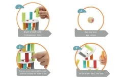 Hilarious game of skill. First you use all the wooden playing pieces to build the bright and colorful Pisa Tower. Make sure you spread out the different color columns as evenly as possible. Next you take turns rolling the dice to see what color column you have to carefully remove. Take care – if the tower falls down you lose! Great fun for all ages.