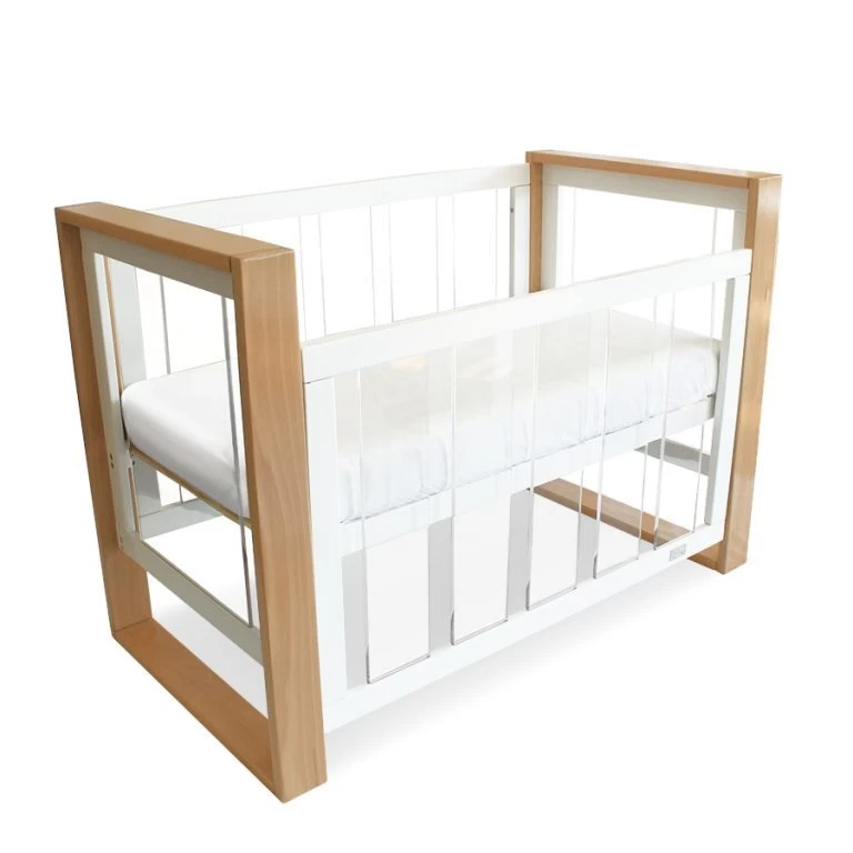 The Bella Cot makes your precious baby the star of the nursery as the cot is designed with acrylic panels to showcase your baby and is framed with a modern European beechwood accent on each end.