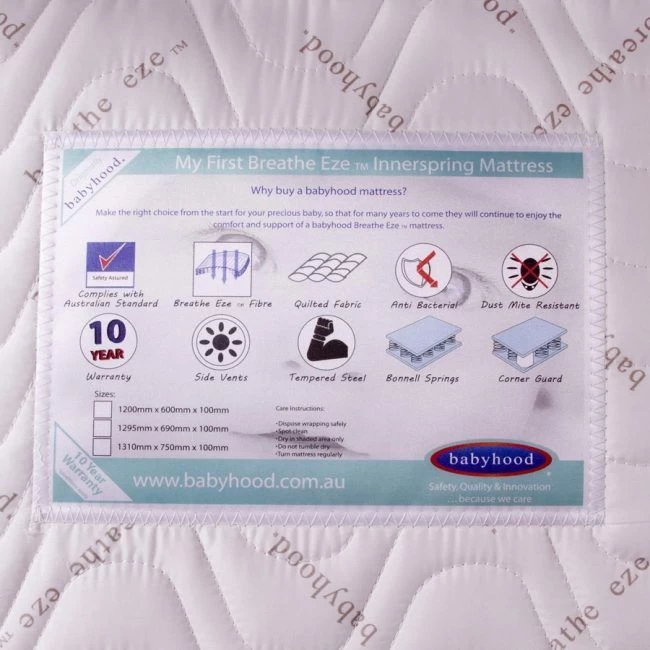 We are so confident that you and your bub will enjoy the safety and comfort of a babyhood mattress for longer that we offer a 10 year manufacturer’s warranty on the structure of the springs.