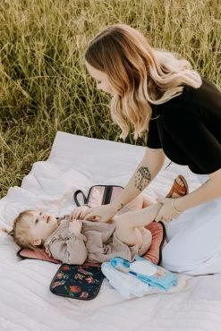 Fresh Australian Botanical print change mat clutch. Great for on the go. A generous and comfy pad for baby, sections for wipes and nappies/diapers. Zip pocket on back for personal things!ย