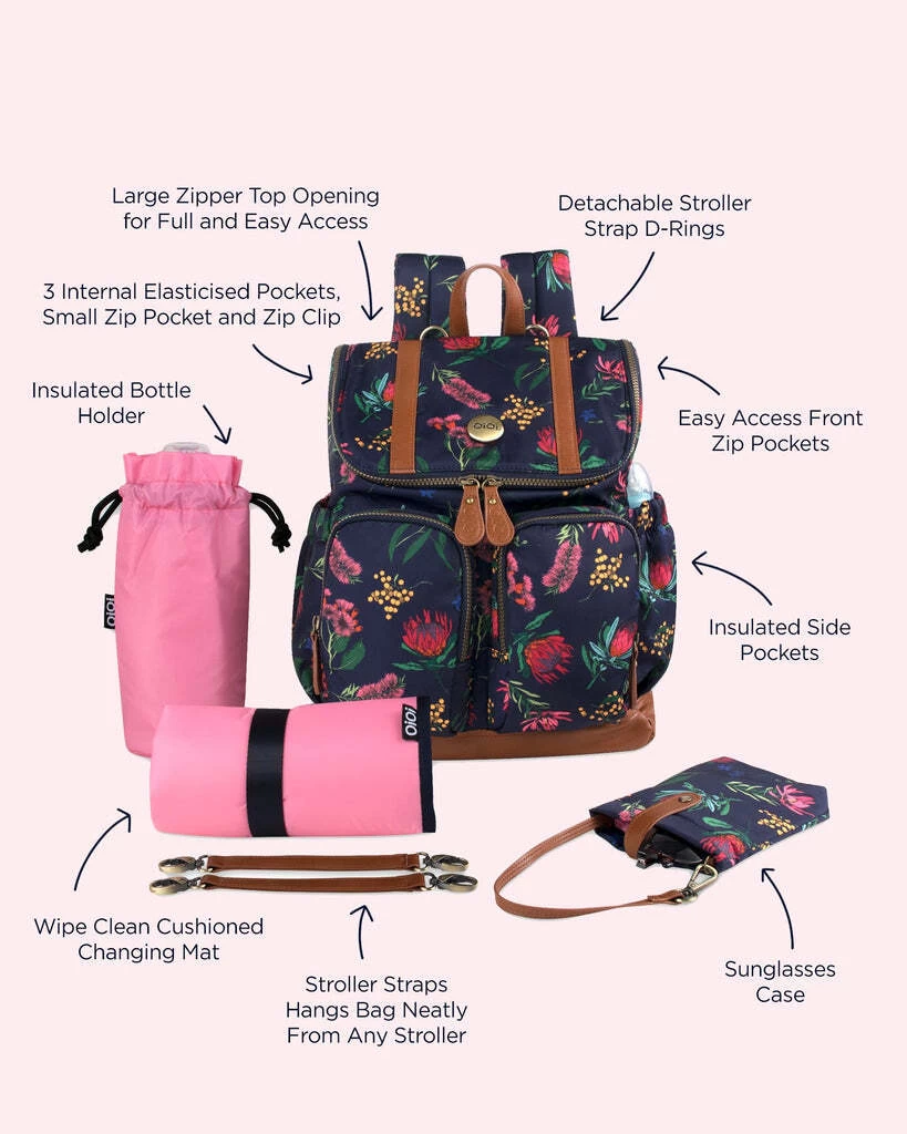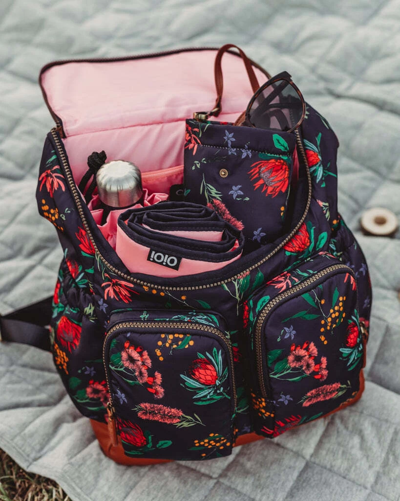 This Oioi nappy backpack was voted the best nappy bag in Australia by parents in 2020 & 2021. You will find the adjustable padded straps are comfortable. You can attach the straps to the pram using the complimentary stroller clips when heading out & about. This attractive nappy bag comes with handy pockets to corral all your supplies, and it includes an insulated bag for baby’s bottle,cushioned changing mat, and a zip top purse for dirties.