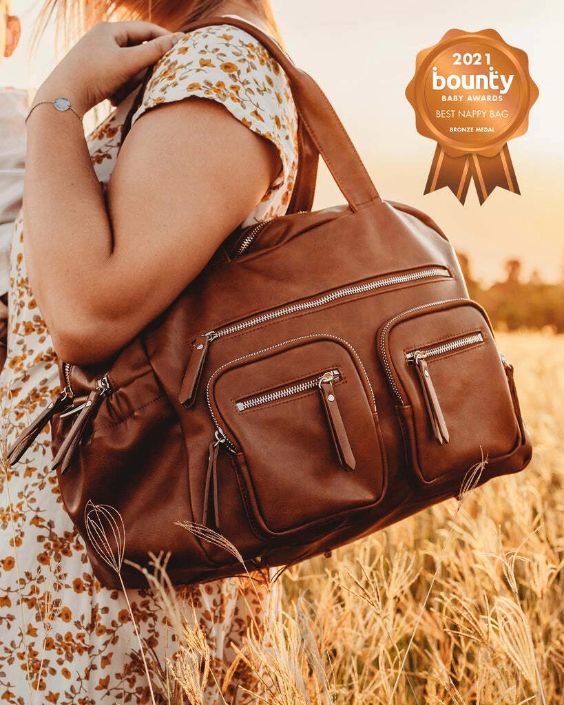 Nappy Bag Carry All – Tan Faux Leather