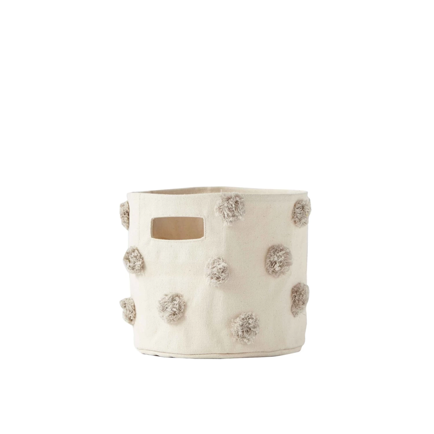 Designed to keep the little bits & bobs safe and bring fun & colour to your little one’s room decor. • 100% heavyweight durable cotton canvas • Pom poms hand sewn • Transitional from nursery to kids’ room Product Dimensions: 20.32 x 17.78cm