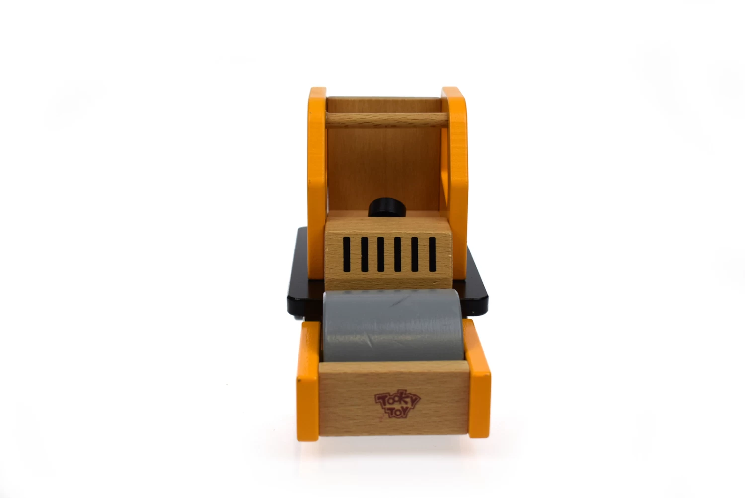 A well-made wooden road roller. Painted in bright yellow with non-toxic paint. A perfect addition to your child’s working vehicles collection where they can pretend to be building and fixing roads. Pretend play encourages creativity and problem-solving skills
