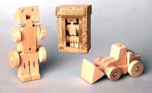 Wooden Transformer Bulldozer Small. At first glance, a powerful bulldozer. But with a few twists, this fantastic wooden toy can be transformed into a robot figure. Each wooden transformer is individually boxed . The instructions are included in the box. It is beautifully crafted and made from good quality beech wood. 3 years plus. Size – 15 x 7 x 5 centimetres.