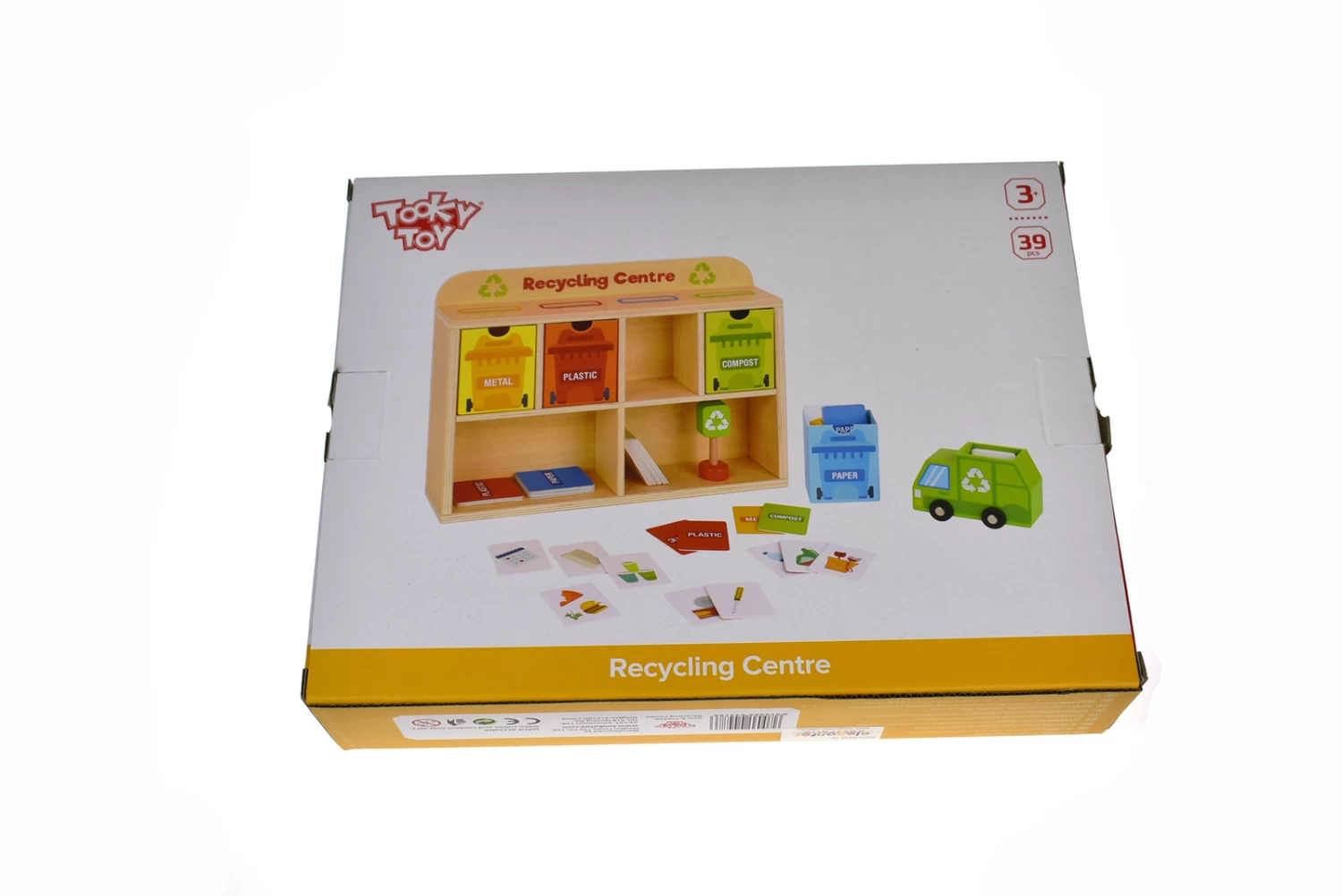 This is a great way to teach kid about recycling. Children sort the tiles into the correct recycling slot. This puzzle enhances fine motor skills and introduces recycling awareness. This sturdy play set is made with good quality wood. Painted with non-toxic paint.